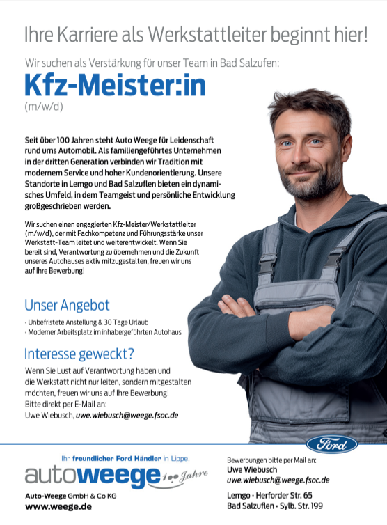 Auto-Weege ist mehr als nur ein Ford Autohaus. Das bestätigen uns sowohl unsere Kunden als auch unsere Mitarbeiter und Geschäftspartner.