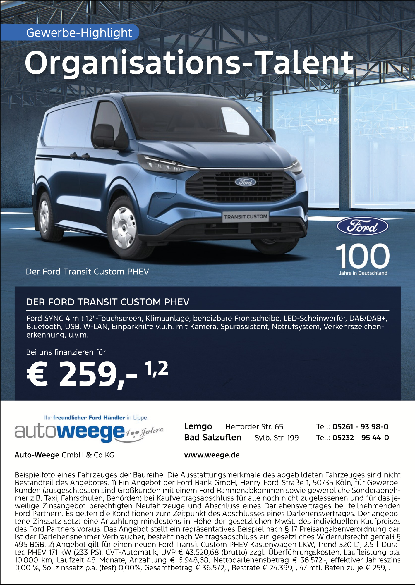 Der Familienbetrieb Auto-Weege ist an zwei Standorten vertreten. Wir entwickeln uns konsequent weiter und sind für unsere Kunden immer auf dem neuesten Stand der Technik. Unsere Mitarbeiter werden kontinuierlich in den Schulungskursen der Ford-Werke weitergebildet.